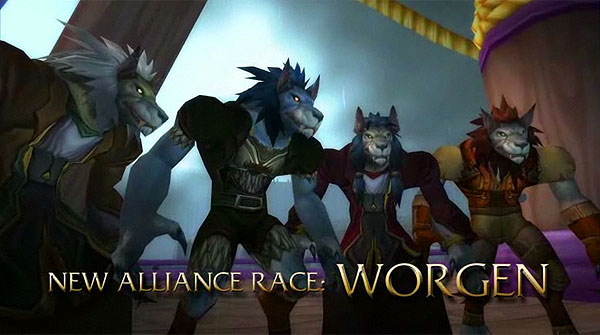 Os Worgens também adicionados na nova atualização, são uma especie de lobisomens leais e muito resistentes as adversidades apresentadas no mundo de Azeroth e talvez a mais cobiçada dentre as novas raças adicionadas em Cataclysm.
