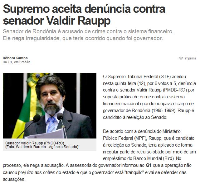 É exatamente o que você leu, um projeto de lei que tramita no Senado de Nº 170 de 2006 do senador Valdir Raupp visa acabar com o mercado de jogos eletrônicos no Brasil. Nosso país já não é um campo agradável para empresas do segmento que culpam os altos impostos sobre os jogos, o que é uma justificativa válida uma vez que o nosso brasilzão é campeão em impostos, porém algumas iniciativas foram adotadas e algumas empresas começam (mesmo que de forma acanhada) e se fixar no país e a distribuir seus produtos oficialmente aqui, como recentemente no caso da Sony que trouxe o PS3 oficialmente para cá, bem como a Microsoft com o Xbox 360 a um pouco mais de tempo. Isso demonstra que os tempos estão mudando e que a maré pode melhorar para nós. Quem vai contra este movimento é o Senador Valdir Raupp que é o autor deste infeliz projeto de lei: