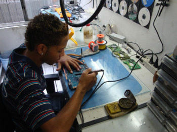 Dá para destravar os videogames mudando a programação com um novo software no console. Todo game moderno tem um programa embutido para ler e rodar os jogos. “Ele busca uma informação codificada no jogo para verificar se é um disco original ou não. Se não for, ele trava. Então colocamos chips com programas que fazem o game pular essa checagem”, diz Leandro Fabres, técnico em eletrônica especializado em videogames. Além de evitarem a leitura do código de segurança, esses chips ajustam o sistema de cores, o tamanho de tela e a área do disco. Na maioria das vezes, os chips são desenvolvidos por funcionários ou ex-funcionários dos próprios fabricantes, que usam informações privilegiadas para ganhar uma grana. Destravar games é um procedimento legal. Você pode encomendar o serviço para usar um disco de segurança, caso o seu original tenha quebrado, por exemplo. Mas os chips são desenvolvidos a partir de um crime – espionagem industrial -, e copiar jogos para vender ou distribuir, sem a nota fiscal do produto original, é outro tipo de crime: pirataria. :-0