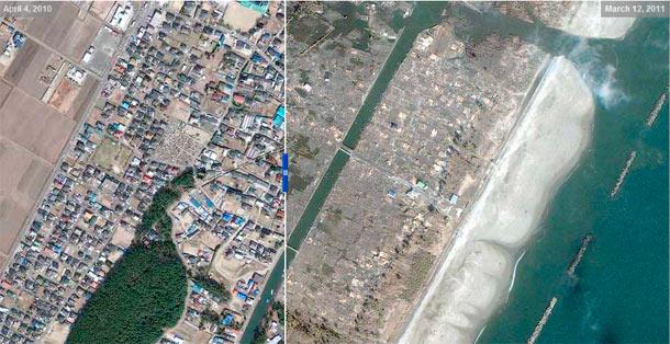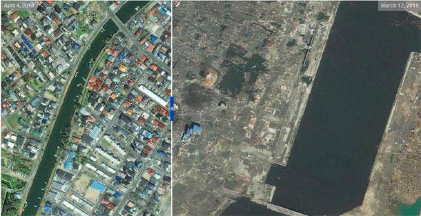 Foi através do seu blog japonês que o Google mostrou imagens satélite que mostram bem a destruição provocada pelo recente tsunami que se seguiu ao violento terremoto da sexta-feira passada.