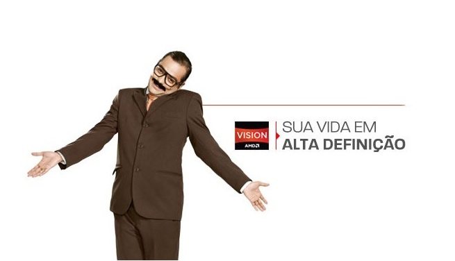 Já que as redes sociais são a onda do momento a AMD resolveu entrar com tudo, depois do sucesso da campanha AMD Improvision estrelada pelo Barbixas a empresa trouxe Eduardo Sterblitch (Cesar polvilho) para promover a tecnologia Vision. O humorista que ficou famoso interpretando personagens como Freddie Mercury Prateado é o astro da campanha desta vez interpretando “O Melhor do Mundo” ao lado da “Vó Marlene” em uma série de vídeos divulgados na página do Facebook da AMD e em seu perfil no Twitter.