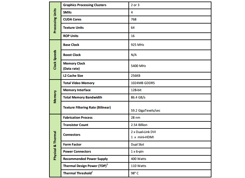 GTX 650 Ti Specs