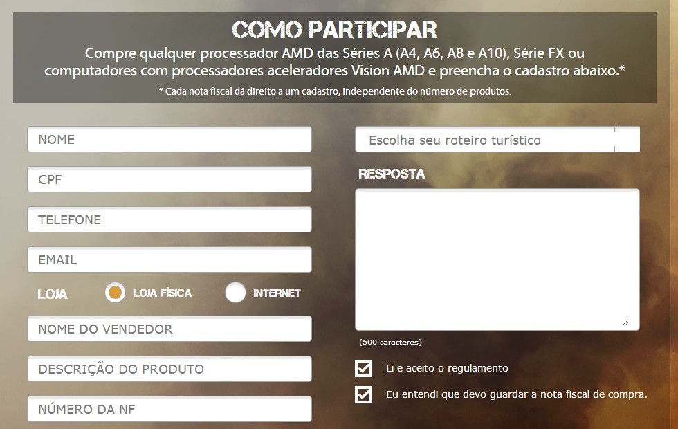 Promo Sem AMD o fora cadastro 26 de outubro de 2012 • 980 × 620 • A AMD quer te levar para conhecer a Brodway, Orlando ou EA Games