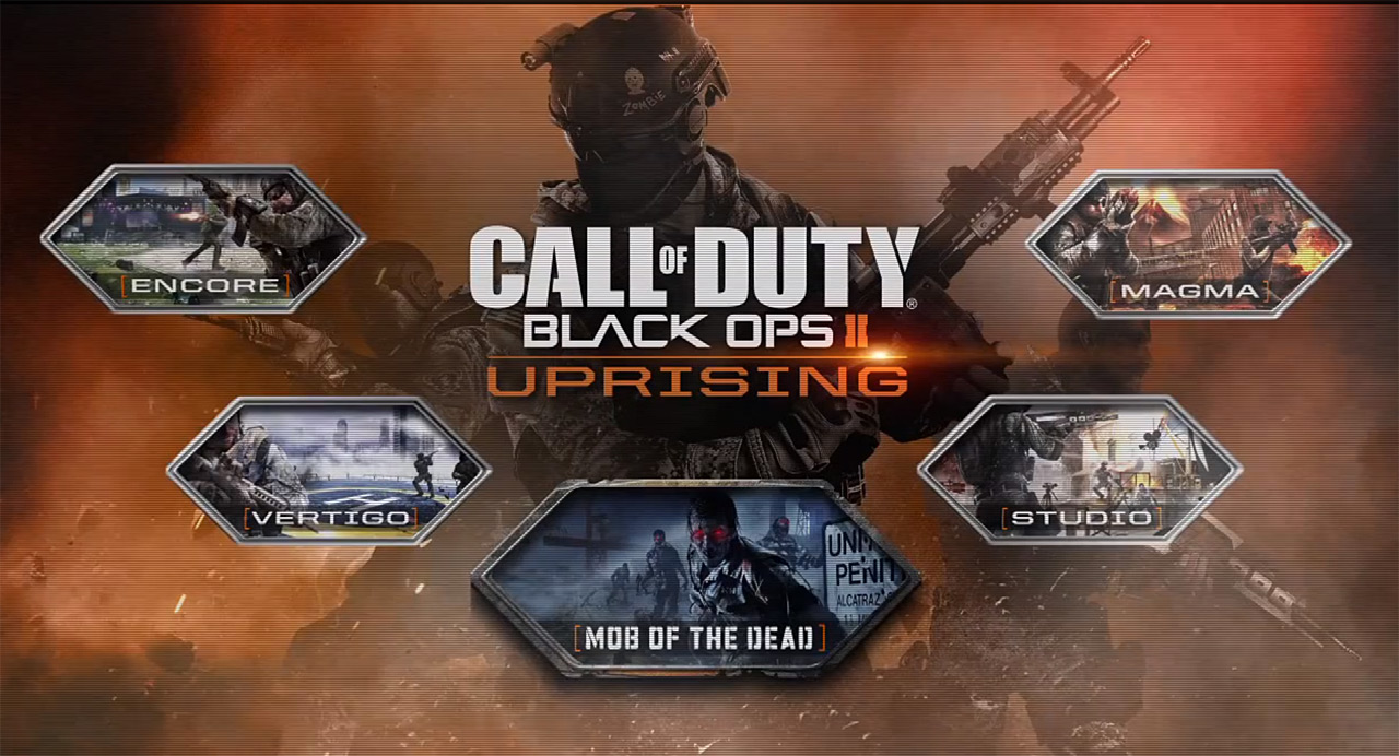 Vazado a alguns dias através de um material de divulgação, o DLC Uprising para Call of Duty: Black Ops II foi confirmado oficialmente pela Activision, comprovando a teoria de que os “rumores” sobre games na sempre tem um fundo de verdade na internet. Uprising inclui quatro novos mapas ao jogo que já eram visíveis no material vazado, são eles Magma, Encore, Vertigo e Studio além de Mob of The Dead, descrito pela Atcivision como um novo modo de sobrevivência que coloca os jogadores na pele de quatro mafiosos – Billy Handsome(Liotta), Al “The Weasel” Arlington (Pantoliano), Salvatore “Sal” DeLuca (Palmentiri), e Michael “Finn” O’Leary (Madsen) – enquanto estão presos em Alcatraz, a famosa prisão localizada em São Francisco.