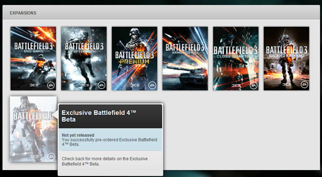 Os jogadores que adquiriram Medal of Honor: Warfighter e Battlefield 4 em pré-venda ou possuem o pacote Premium de Battlefield 3 já começaram a visualizar a versão beta de Battlefield 4 em suas bibliotecas como conteúdo ainda por ser lançado já a algum tempo, isso significa que por enquanto ainda não é possível realizar o download mas se está por ali é porque a data começa a se aproximar. Para os demais usuários do Origin a versão beta de BF4 não aparece em sua biblioteca, mas não fiquem desapontados, todos terão a chance de participar da fase beta.