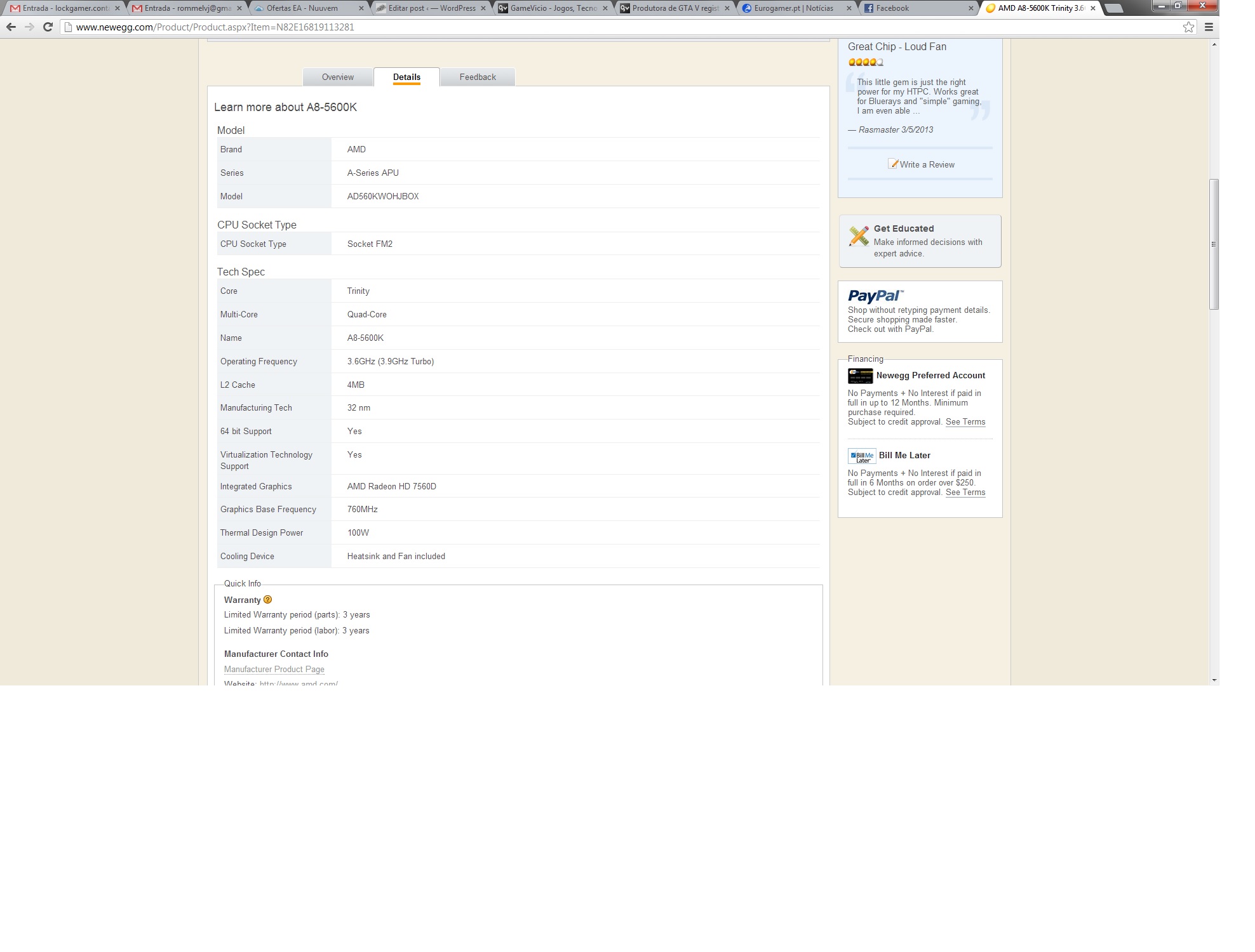 As APUs já estão presentes a muito mais tempo nos PCs e notebooks onde já estão chegando a terceira geração, aqui no Brasil começam a surgir no mercado os modelos da série codinome “Trinity”, e nós já testamos a APU top desta linha, o A10 5800K (review: http://wp.me/p1dbLL-3Bu) e agora trouxemos para vocês os testes com o processador que vem logo abaixo dele, o A8 5600K. As duas APUs apresentam grandes semelhanças, ambas são quad-core e chips gráficos DirectX 11 da série HD 7000, as diferenças ficam apenas no clock do processador e nos Radeon Cores e clock dos chips gráficos que são menores no A8 5600K que, por sua vez, custa cerca de US$ 20,00 a menos. Mas quanto a diferença de preço reflete no desempenho? É o que vamos descobrir neste review.