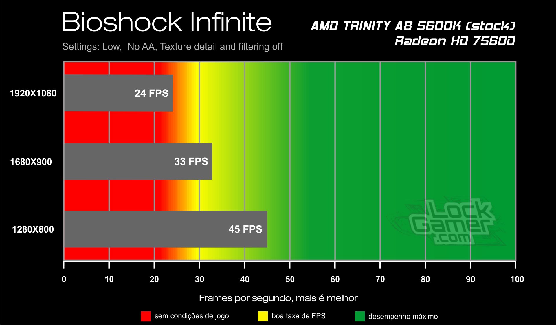 Bom Wallace, como você viu em nossos testes, na resolução Full HD o desempenho é realmente inferior, mas como disse anteriormente, em relação a capacidade de processamento do A8 você pode ficar despreocupado na hora de adicionar uma GPU.