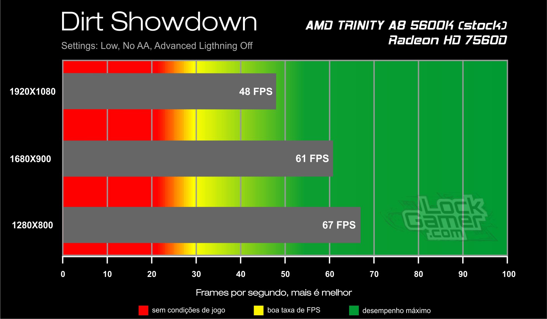A geração Trinity de APUs constitui uma opção de baixo custo para gamers casuais que pretendem rodar jogos em resoluções medianas com detalhes médios/altos ou em resolução Full HD com detalhes médios/baixos se utilizar filtros como Anti-aliasing, como puderam conferir nos testes, o A8 5600K foi capaz de executar os títulos de maior sucesso no mundo dos games, alguns deles considerados um páreo duro até mesmo para PCs com placas de vídeo dedicadas, assim como no review do A10 5800K o desempenho em alguns jogos foi satisfatório em 1920×1080 Full HD com detalhes no mínimo, deixando margem para aumentar alguns detalhes enquanto em outros jogos mais “pesados” é necessário diminuir a resolução para obter uma taxa de FPS mais satisfatória. Uma coisa foi unânime em todos os games testados, a resolução 1280×720 (HD) parece ser a ideal pois, com os detalhes mínimos a taxa de FPS é alta deixando uma margem que possibilita o aumento dos detalhes gráficos e até mesmo os filtros, combinando uma boa experiência visual e um ótimo desempenho sem investir em uma placa de vídeo discreta.