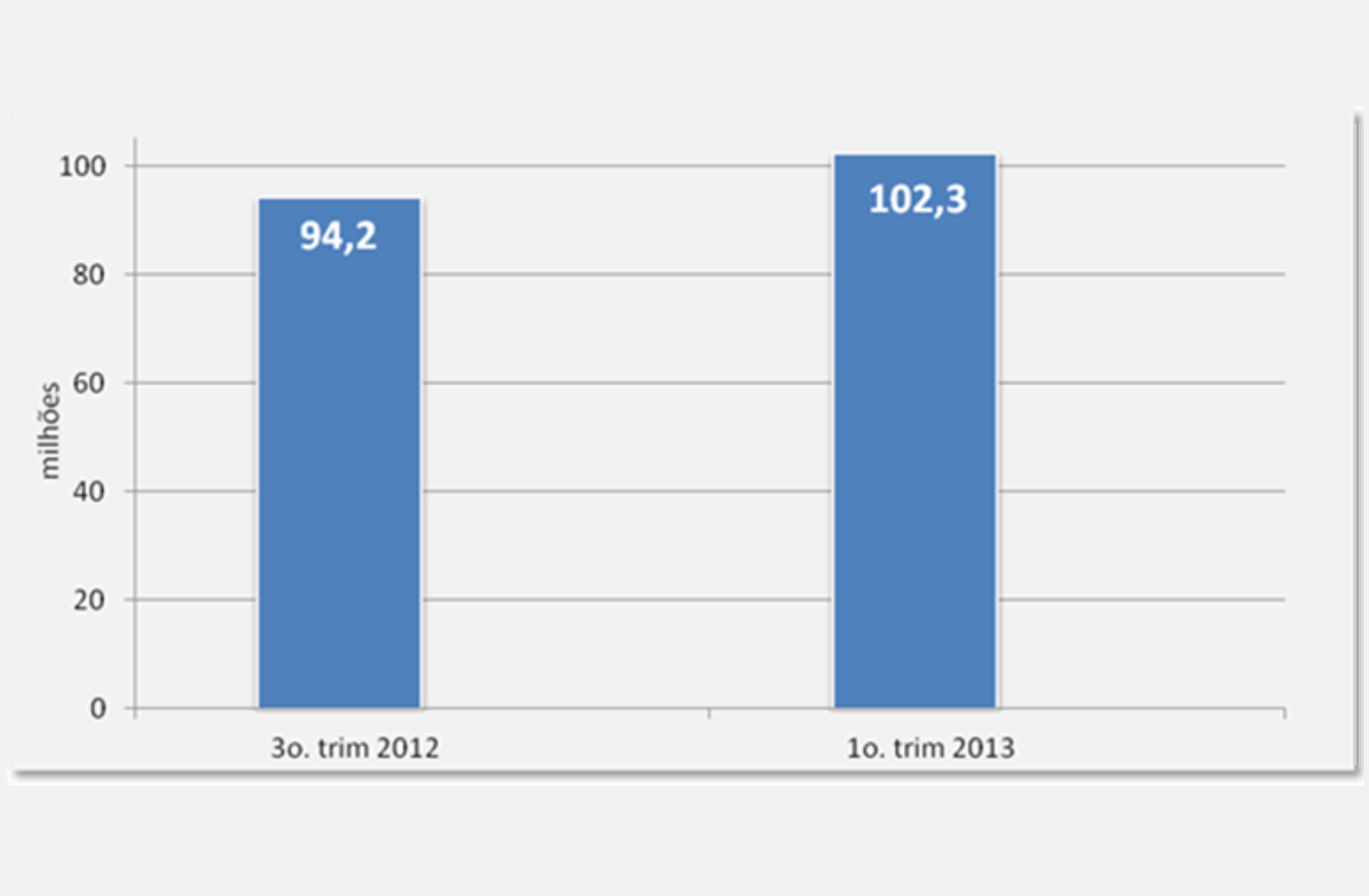 O total de pessoas com acesso à internet no Brasil no primeiro trimestre de 2013 chegou a 102,3 milhões, segundo o IBOPE Media essa é a primeira vez que a marca é superada no Brasil. O crescimento foi de 9% sobre os 94,2 milhões divulgados no terceiro trimestre de 2012. Nesse estudo são consideras pessoas de 16 anos ou mais de idade com acesso em qualquer ambiente (domicílios, trabalho, escolas, lan houses e outros locais), além de crianças e adolescentes (de 2 a 15 anos de idade) que têm acesso em casa.