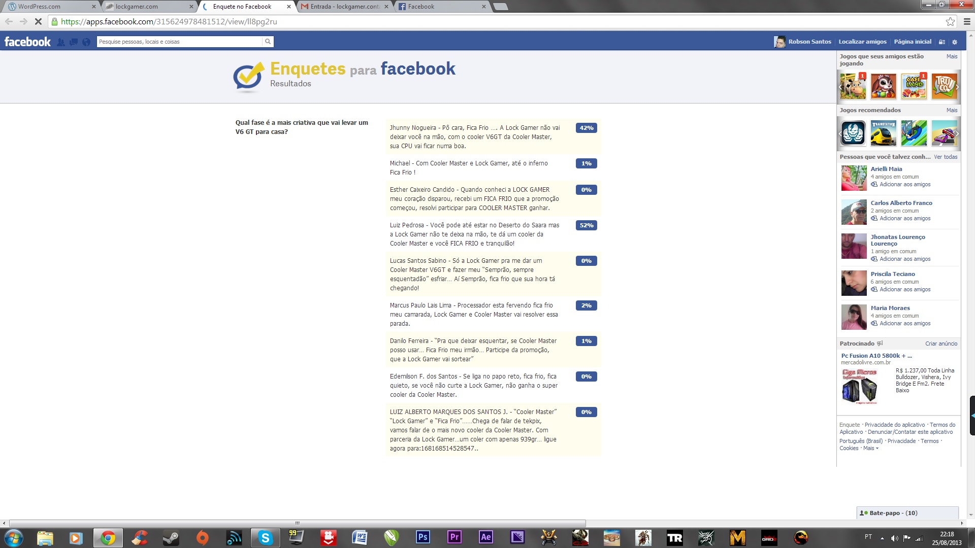 Muita gente participando mas irei “Fica Frio”, Pois da “Lock Gamer” irei GANHAR um V6 GT da “Cooler Master” para Congela a CUCA do meu Processador quando eu Clocka.
