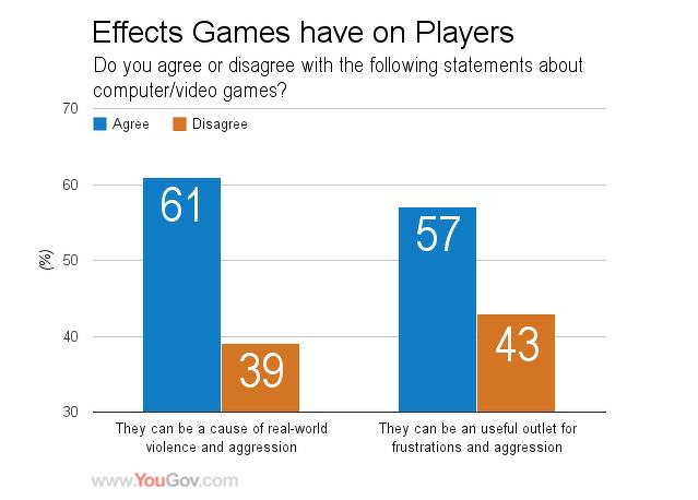 Como para alguns veículos de comunicação culpar filmes violentos por assassinatos, séries de TV por psicopatas e as novelas pela “molecada pagando de vida loca” não e algo lucrativo (afinal eles vendem esses produtos) eles encontram nos games uma figura perfeita para ser culpada por todo a violência que assola a humanidade entupindo os noticiários sensacionalistas da tarde, e parece que eles vem fazendo um bom trabalho em convencer a população, pelo menos no Reino Unido onde a pesquisa revelou que 61% dos entrevistados acreditam que os jogos podem causar violência e agressão no mundo real.