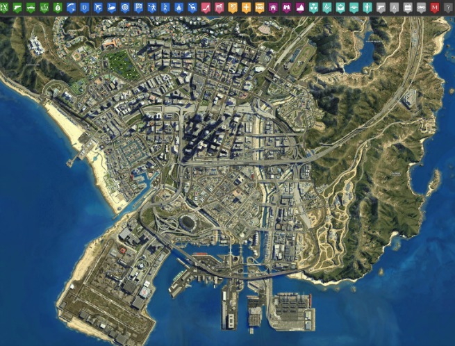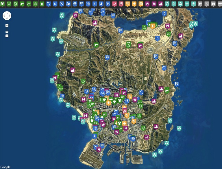 Foi criada um versão do mapa de Los Santos ao estilo Google Maps, nele podemos identificar todas as atrações disponíveis na cidade, além dos tradicionais pontos de venda de armas e lojas de roupa é possível encontrar o aeroporto, as barbearia, corridas ilegais, pontos turísticos, locais para prática de esporte, enfim, praticamente tudo o que vale a pena visitar. Para visualizar o mapa basta acessar o link http://gta-5-map.com/#, assim como no Google Maps, lá também é possível encontrar endereços de locais digitando na busca.