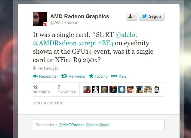 Segundo a AMD, a demo de Battlefield 4 exibida no evento rodava na monstruosa resolução de 5760×1080 a 60 FPS, questionada se o jogo rodava em uma configuração Crossfire com duas Radeon R9 290X a AMD respondeu através do twitter que apenas uma GPU foi utilizada. Isso seria possível graças a grande “sacada” da AMD, a API Mantle que substitui a complicada e limitada DirectX da Microsoft nas placas Radeon com arquitetura GCN (Graphics Core Next) dando acesso direto a todos os recursos de hardware das GPUs.