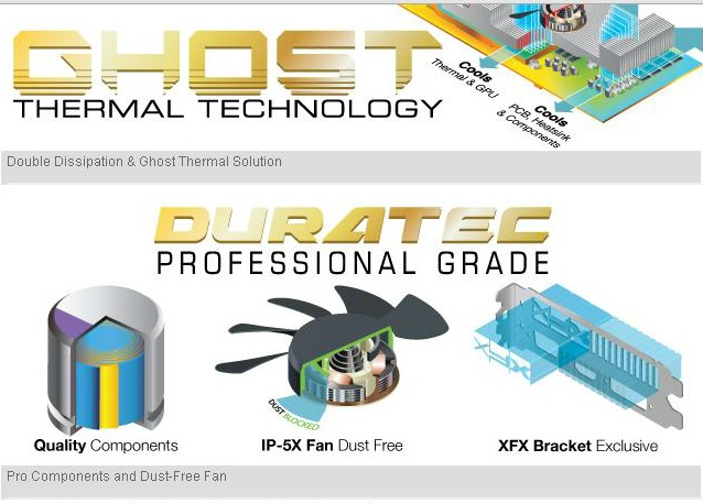 Mas a XFX fez um trabalho ainda melhor com o seu sistema “Ghost” que melhora a eficiência na refrigeração e proporciona menores temperaturas com rotação mais baixa e um ruído menor, tudo graças a uma construção com componentes de alta qualidade tanto na fan quanto nos dissipadores, algo de dar inveja a placas top de linha e um dos melhores trabalhos da XFX nos últimos anos.