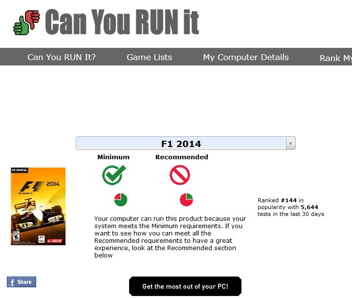 Caso os requisitos mínimos e recomendados não o ajudem a entender se seu PC será capaz de rodar o jogo em suas configurações mínimas ou máximas nós indicamos um aplicativo que pode facilitar sua vida, o “Can You RUN It”, um aplicativo que pode ser baixado no seu desktop para identificar o hardware do seu PC e determinar se ele é capaz de rodar determinado jogo no mínimo e no máximo. O teste também pode ser feito online através do site, basta escolher o jogo e permitir os complementos, o resultado detalhado inclusive com o que é preciso melhorar para chegar ao mínimo ou recomendado no seu hardware.