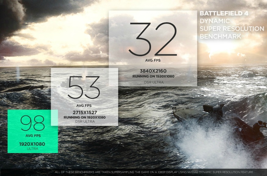 A resposta da Nvidia é o DSR (Altíssima Resolução Dinâmica), com ela os games podem ser renderizados até 4K ou outras resoluções de ponta, e então podem ser dimensionados para a resolução nativa da tela do usuário usando um filtro gaussiano de 13 toques. A imagem resultante tem qualidade muito maior do que apenas renderizar diretamente para Full HD 1080p, o recurso é ativado automaticamente pelo GeForece Experience que otimiza os jogos de acordo com a capacidade de seu hardware, então sempre que for possível o recurso será ativado.