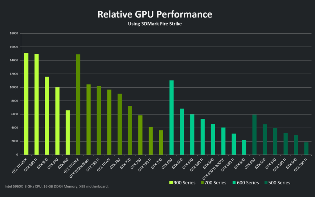 Como é de costume, a placa da geração atual vem para substituir a mesma com a nomenclatura utilizada na geração anterior, no caso da GTX 960 ela vem substituir a GTX 760 e consegue disputar ainda com a GTX 770 em alguns casos.