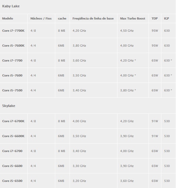 core-i7-7700k-vs-i7-6700k 30 de novembro de 2016 • 577 × 617 • Testes mostram Intel Core i7 7700K a 4.9 GHz e 100ºC em OC